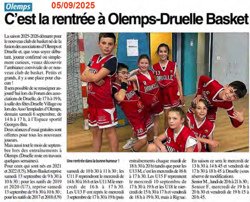 Article Centre Presse 5/9/2025 : C'est la rentrée à Olemps Druelle Basket